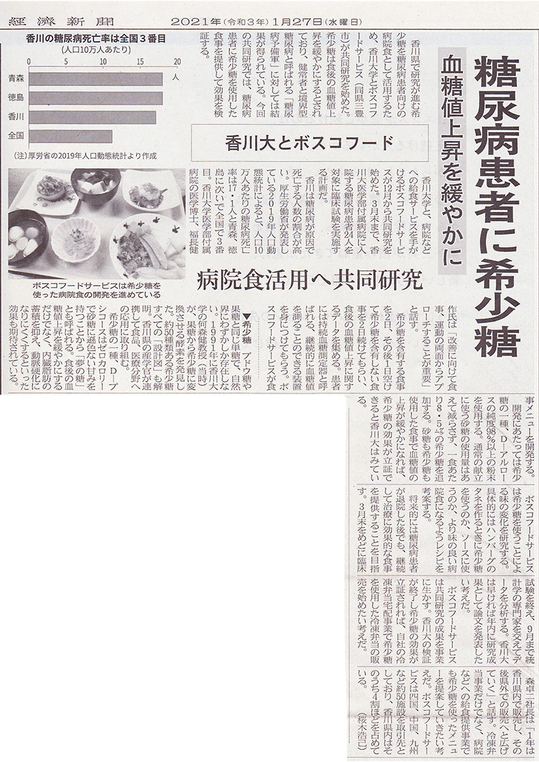 ボスコフードサービスは1978年から四国・中国地域を中心に病院給食など、団体給食サービスを提供しています。 現在、セントラルキッチン方式で冷凍加工食品中心の給食サービスが多い中、弊社では地域の素材を利用することに心がけ、地元の新鮮な食材を地域の特性を生かした調理方法で調理し、喫食者様にご好評を頂いております。 又、各施設に求められる様々な要件に対して各施設の方針に基づく、献立管理・帳簿管理をはじめ食材の調達・人材の育成をお客様に代わり管理し、安定したサービスをご提供させて頂いております。